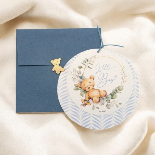 Προσκλητήριο αρκουδάκι αγόρι στρογγυλό με κλείσιμο πλέξιγκλας καθρέπτη χρυσό αρκουδάκι, με ζωντανά χρώματα και υπέροχες αναπαραστάσεις σε εξαιρετικής ποιότητας χαρτιά!